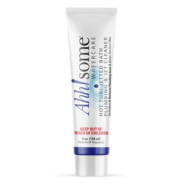 Ahh-Some® Hot Tub/Jetted Bath Plumbing & Jet Cleaner is a unique and environmentally friendly gel formula that, when used as directed, removes the build-up of bio-fouling inorganics, oils, lotions, cosmetics, exfoliated skin and other contaminants – from the plumbing, jets, and shell of typical hot tubs and jetted bathtubs.