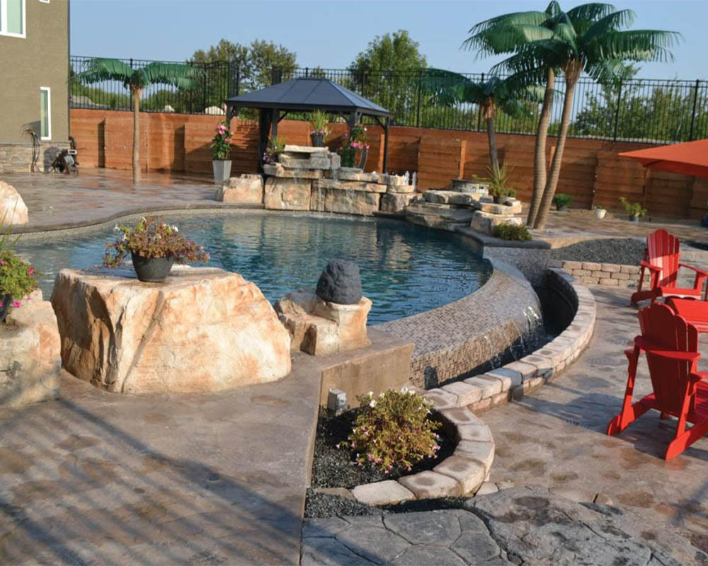 A modern take on the classic kidney pool. It’s a great day when the backyard swimming pool is the fun place to be.