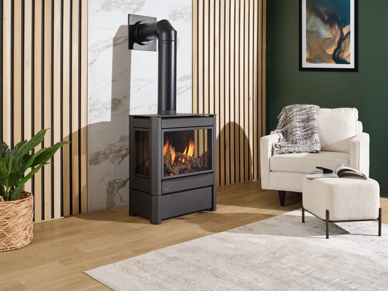 Regency Atmosphere GS33E gives a sleek and contemporary heating solution to any home with the simplicity of electronic ignition. There is no bad spot to sit when warming up in front of this high-heat unit with 3-sided viewing and stunning infusion burner technology.