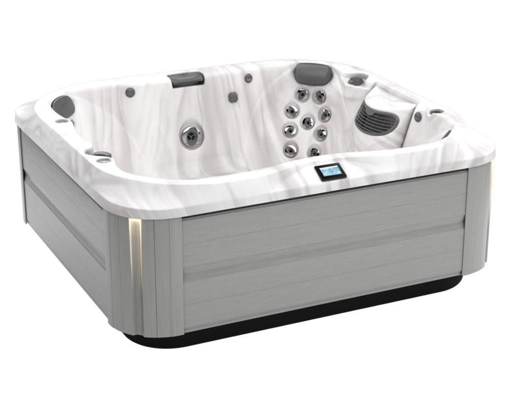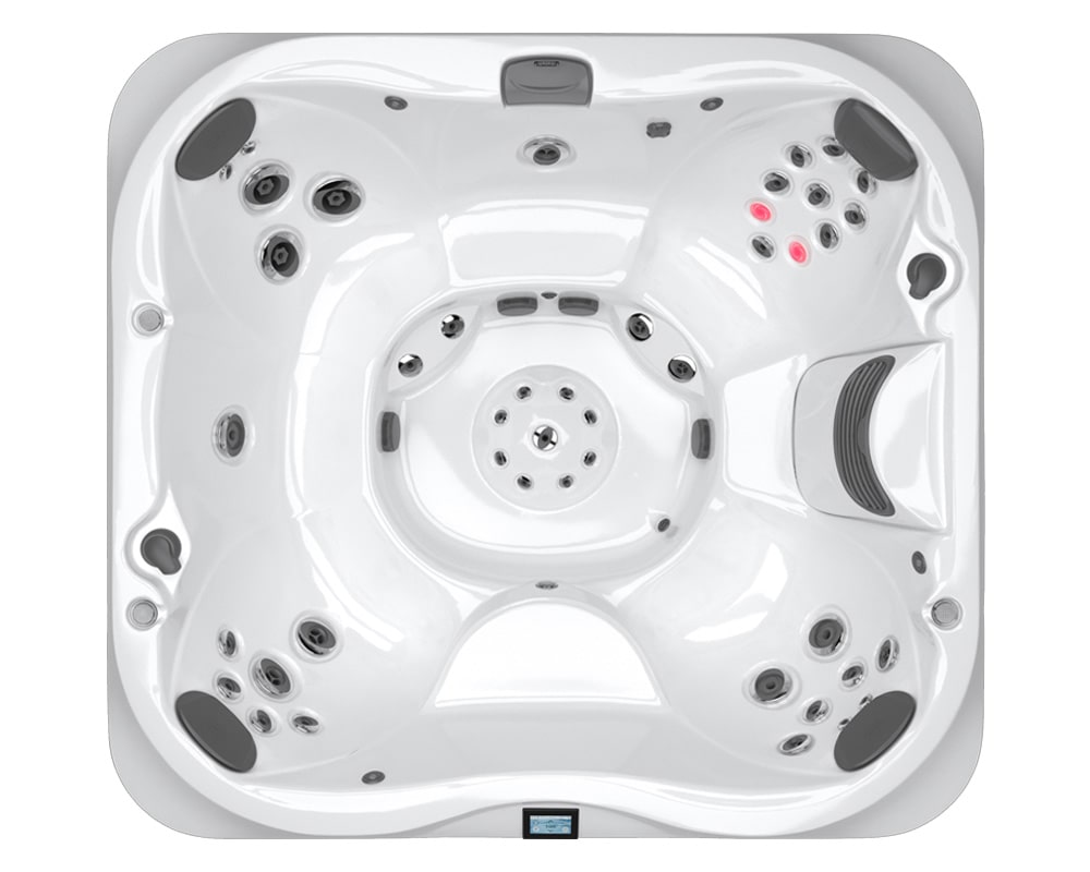 The midsize, rectangular J-365™ Hot Tub offers an open seating layout Features PowerPro® jets Boasts PowerPro® Therapy Seat for relaxing massage Set apart by sophisticated ProFinish™ cabinetry with optional corner accent lighting Easy-to-use control panel HydroSoothe™ no-splash jetted massage pillow